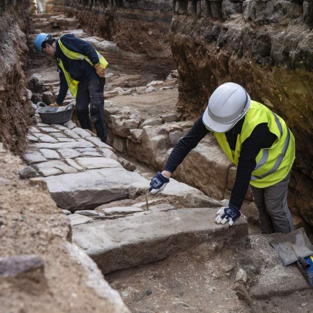 “Es como una fotografía de 1718”, explica Anna Bordes, de la empresa de arqueología Atics SL y directora arqueológica de la obra, para referirse al año en que, con toda probabilidad, se iniciaron los derribos de esta parte de la Ribera. De hecho, por unos días, desde la calle se puede ver una gran zanja en la que se pueden identificar los pavimentos de los interiores de las casas, así como el de la calle Caldes, con un recorrido diferente del actual Antic de Sant Joan. Este yacimiento tiene los días contados, ya que, más allá de la documentación y retirada de los bienes muebles —balas de cañón de la artillería francoespañola, monedas, pipas y otros enseres como cubiertos y botones—, parte de los muros serán desmontados para permitir la instalación del colector y los pavimentos volverán a quedar sepultados, quizás por tres siglos más.