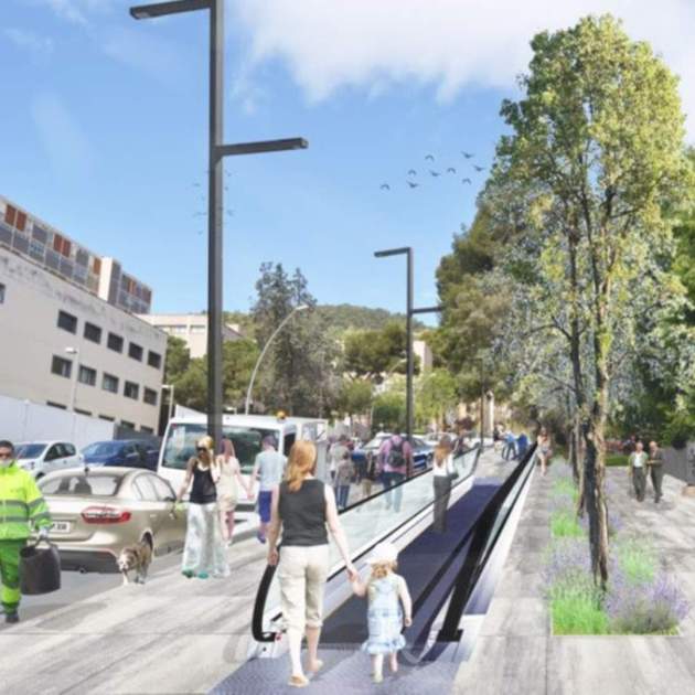 En el espacio público de Barcelona abundan las escaleras mecánicas y los ascensores, ya sean verticales o inclinados. Se trata de elementos que facilitan la vida a los vecinos de calles con tramos de escaleras o empinadas. Ahora bien, lo que hasta ahora no había en el término municipal de Barcelona eran rampas mecánicas, una solución especialmente indicada para calles empinadas con una pendiente sostenida, lo suficientemente importante como para ponerle elementos mecánicos que ayuden a los peatones pero con un desnivel inferior al indicado para instalar ascensores o escaleras mecánicas. Las primeras rampas de este tipo se instalarán en la calle de la Poesia del barrio de Montbau (Horta-Guinardó), con una pendiente sostenida del 10 por ciento.