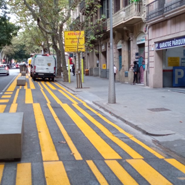 El lunes mismo se tuvo noticia que la finalización de las obras de las nuevas salidas de emergencia del túnel Sants-la Sagrera de l'AVE había dado paso a otra intervención controvertida en la calle de Nàpols, entre Mallorca y Provença, esta vez porque no se había aprovechado la renovación integral de la calle para ensanchar de forma definitiva las aceras y apostar, una vez más, por un sistema que es, en sí mismo, provisional. Y que se tiene que repintar de vez en cuando. De día, o de noche.