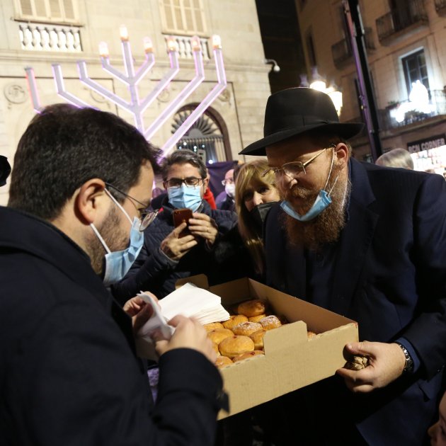 Las comunidades judías de Barcelona han organizado esta tarde en la plaza Sant Jaume el encendido de la Janucá, el candelabro de 8 brazos judío de la fiesta de las luces, que recuerda la victoria de los macabeos hacia el 165 a.C. ante los griegos seléucidas que estaban liderados por Antíoco IV Epifanos. Al acto ha asistido el president de la Generalitat, Pere Aragonès, y la consellera de Justícia, Lourdes Ciuró.