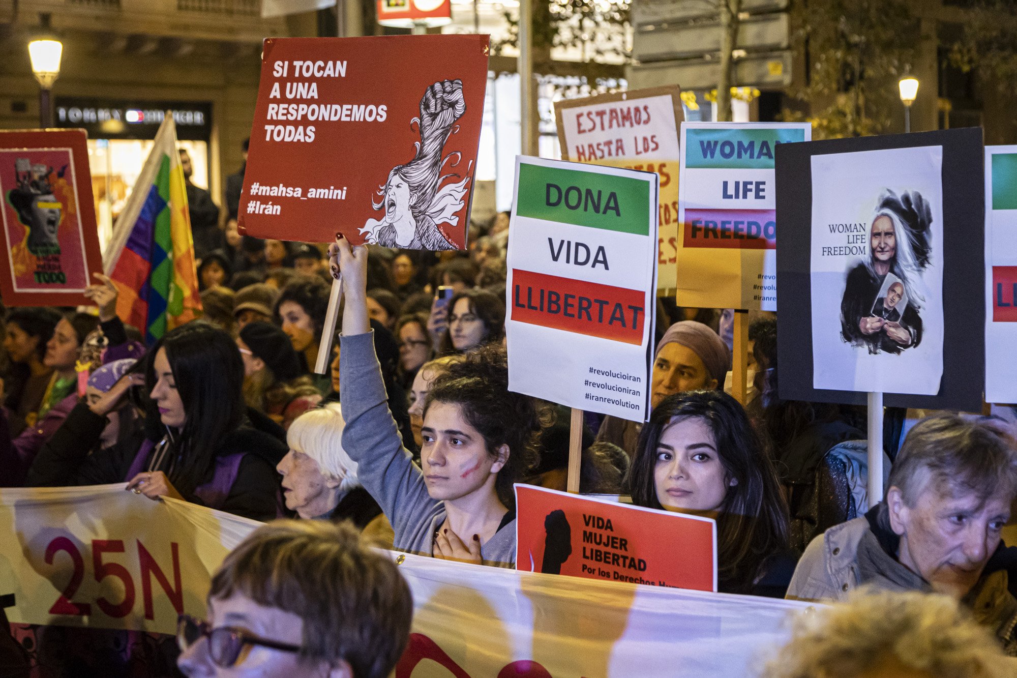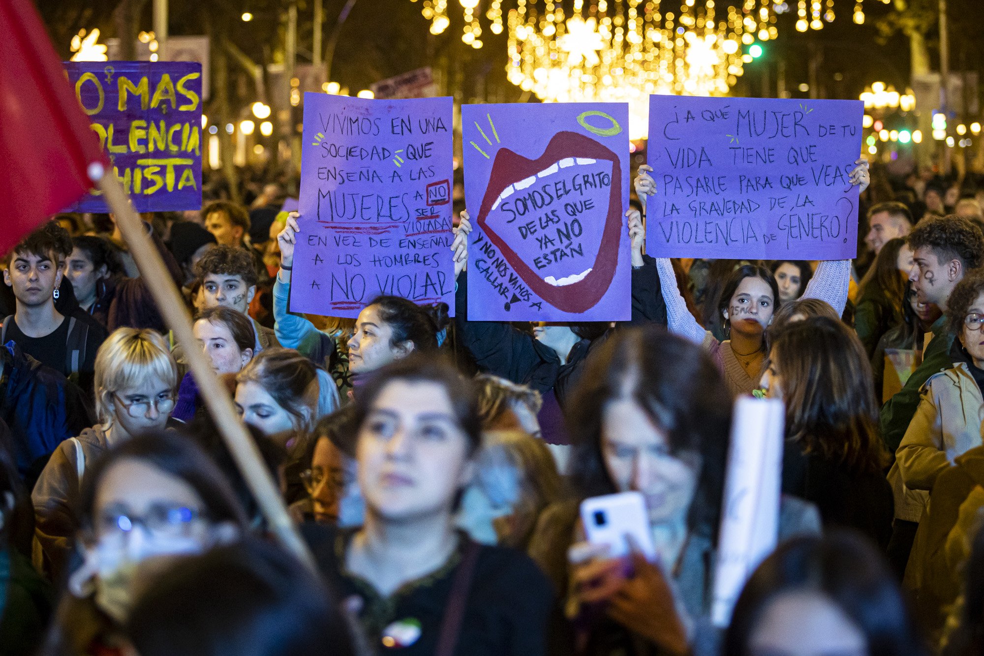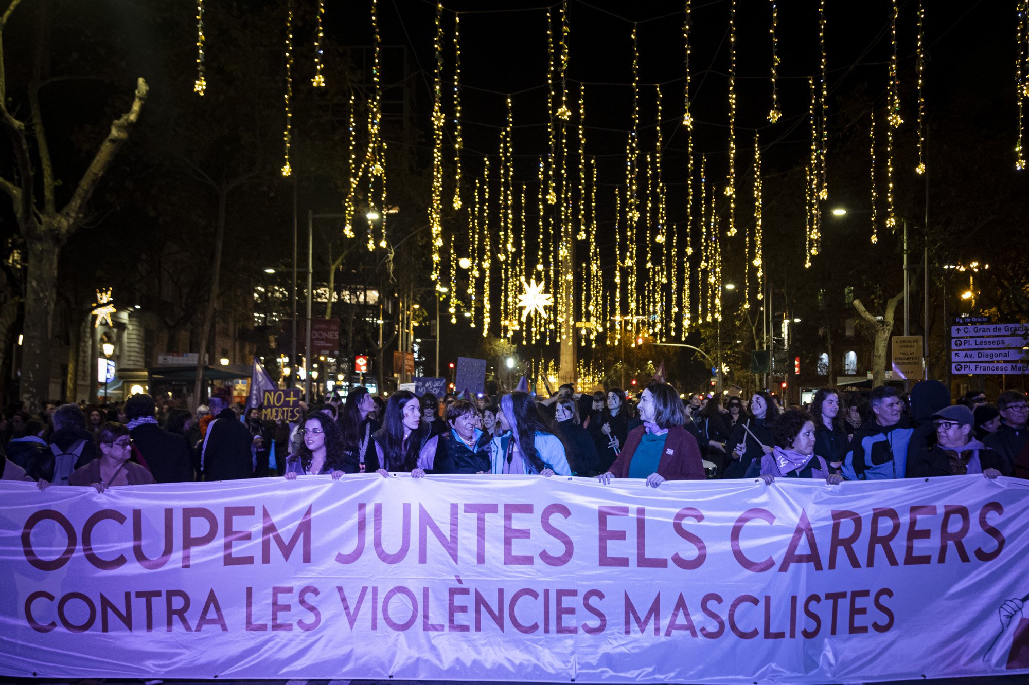 Miles de feministas se concentran en Barcelona por el 25-N, Día internacional contra las violencias machistas. La protesta, organizada por Noviembre Feminista, ha bajado por Passeig de Gràcia hasta la Gran Via, donde ha culminado la jornada con una 'performance' a cargo de Batucada Escandalera y la lectura del manifiesto a cargo de Isabel (madre protectora) , Dolo Pulido (Noviembre Feminista, Ca la mujer y sindicalista), Lucie Foissin Massey (psicóloga feminista), Lorena Garrido (Grupo Antígona UAB) y Paula Santos (Mujeres Migrantes Diversas). A continuación, un resumen del acto en imágenes.