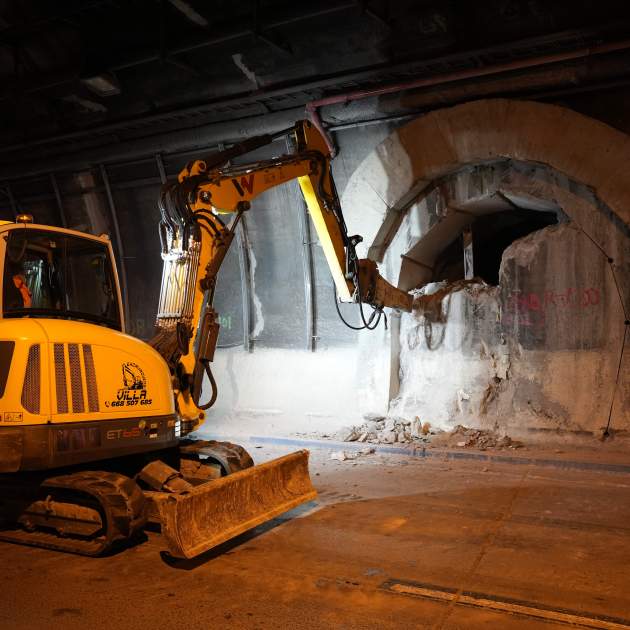 Según ha informado el Ayuntamiento de Barcelona este lunes, la apertura de los portales de las galerías se ha llevado a cabo desde el tubo ascendente con máquina retroexcavadora, aprovechando los cortes nocturnos. La intervención ha consistido en la demolición de la bóveda de hormigón después de que el pasado julio finalizara la excavación de las galerías desde el tubo descendente. Desde el final de la perforación hasta ahora, dentro de las galerías, las obras se han centrado en completar los trabajos de revestimiento e impermeabilización, y ahora se trabaja en la fase de instalaciones. Además, en el tubo descendente se han tratado las fisuras existentes y se han reforzado las juntas para mejorar su impermeabilización. También se ha construido el muro perimetral que actuará como nuevo sistema de drenaje, se han renovado la iluminación y la pintura y ahora se trabaja en las nuevas instalaciones.