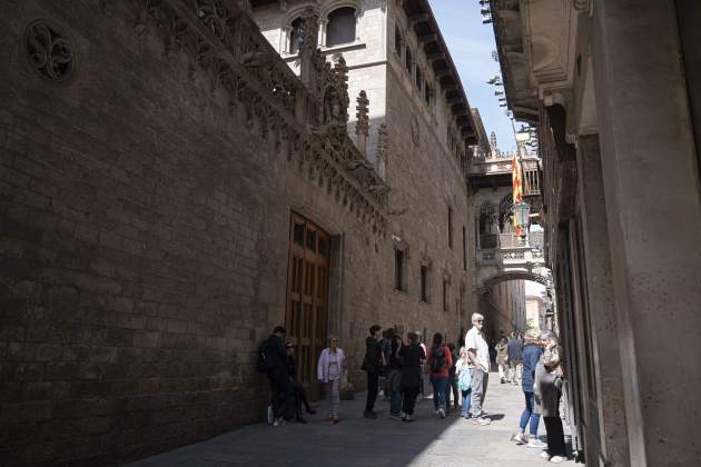 En este contexto, no es de extrañar que el edificio que representa el poder político catalán, el Palau de la Generalitat de la plaza de Sant Jaume de Barcelona, sea un espacio donde este santo tiene una significación muy especial. De hecho, en el mismo Palau hay una cincuentena de representaciones del santo, además de la capilla de Sant Jordi, una obra primordial del gótico flamígero en Catalunya. San Jorge, a caballo o sin, pero siempre matando el dragón, es omnipresente en el Palau de la Generalitat, con esculturas en varios puntos como la galería gótica, la misma capilla, el Saló de Sant Jordi y el Pati dels Tarongers. Ahora bien, dos de los san Jorges más emblemáticos son los situados en las fachadas, porque además de su importancia artística, están a la vista de todo el mundo y no hay que entrar en el Palau para disfrutarlos.