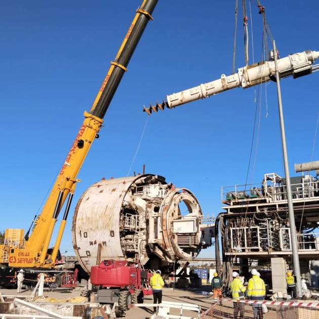 La máquina se introducirá en el pozo de la Gran Via en dos tandas, una primera con cuatro remolques y la segunda con dos remolques más. Entre la primera y la segunda fase habrá una parada para acabar de montar la tuneladora, pero cuando ya esté del todo preparada perforará de manera ininterrumpida los 3,6 kilómetros de túnel. El plazo previsto de ejecución del túnel es de unos 13 meses.