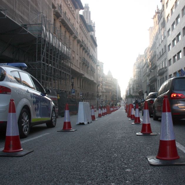 Pasaban pocos minutos de las 8 de la mañana cuando agentes de la Guardia Urbana han colocado las vallas que cortaban el acceso a la Vía Layetana de Barcelona, en motivo del Día sin Coches.