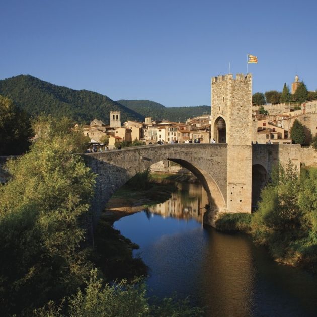 La Garrotxa conserva el encanto romántico de un pasado medieval lleno de vida: una tierra de castillos, fortalezas y ermitas. Encontramos este legado en Sant Joan les Fonts, con la iglesia del antiguo monasterio benedictino, también en Santa Pau, con su recinto histórico presidido por el castillo de la Baronía, documentado a mediados del siglo XII y, por descontado, a la villa condal de Besalú. En esta comarca del norte de Catalunya se pueden observar dos tipos de paisaje totalmente diferentes. Desde el valle del río Fluvià hacia el norte, el relieve es abrupto y escarpado, con abundantes riscos y desfiladeros. En claro contraste en la zona central se extienden más de 40 volcanes y varias coladas de lava, dibujando un paisaje suave y sin desniveles único en Europa, paraje donde encontramos la capital, Olot.