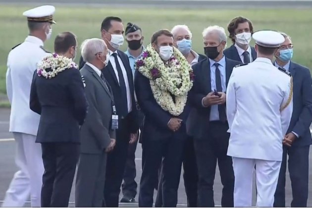 Captura del recibimiento a Emmanuel Macron en Tahití.