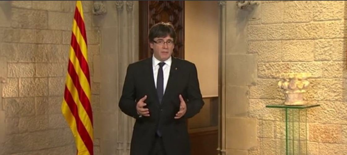 En la aparición de hoy, las puertas han aparecido casi cerradas, coincidiendo con el hecho de que el Gobierno español ha decidido aplicar medidas duras para suprimir el autogobierno catalán. Puigdemont ha considerado que Mariano Rajoy ha dado "un portazo" al diálogo, lo que abre el escenario de levantar la suspensión de la declaración de independencia.