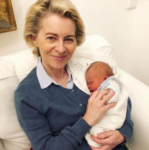 Von der Leyen, madre de siete hijos, fue abuela por primera vez este mes de mayo y se mostró orgullosa de su nieta en su cuenta de Instagram, donde publicó una foto al lado de la criatura: "La primera, qué momento más mágico", escribió.
