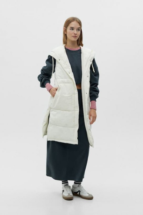 Pull&Bear se ha destacado con el diseño de su chaleco acolchado largo con capucha, un chaleco que ha conquistado los corazones de muchas y que al mismo tiempo se ha posicionado como parte de lo más buscado en estos días de rebajas en las tiendas de la marca española.