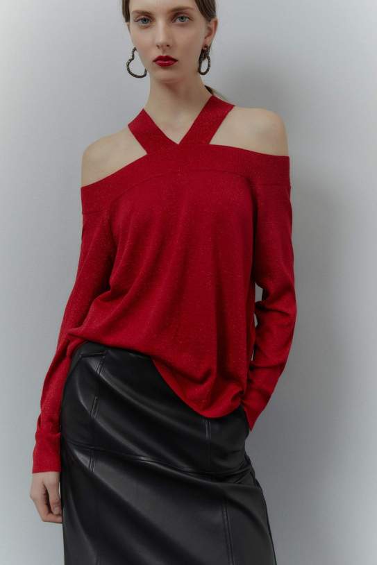 El vibrante tono rojo de esta prenda es quizás lo que más llama la atención, pues aporta un toque audaz y festivo que realza cualquier look sin ningún tipo de problema. Este color, símbolo de elegancia y pasión, se adapta perfectamente a las celebraciones de invierno, asegurando que seas el centro de atención. Además, el diseño cut-out que tiene añade un elemento moderno y atrevido, convirtiendo un básico de armario en una pieza llena de estilo.
