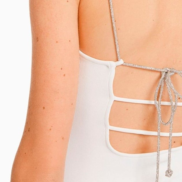 Se trata del vestido mini de tirantes con strass, ribeteado y lazada trasera. Este vestido es la combinación perfecta entre elegancia y comodidad, pues está hecho con materiales de alta calidad que permiten un ajuste perfecto al cuerpo. Además, su diseño clásico pero moderno hace que sea una pieza atemporal que se puede llevar durante varias temporadas sin perder su estilo.