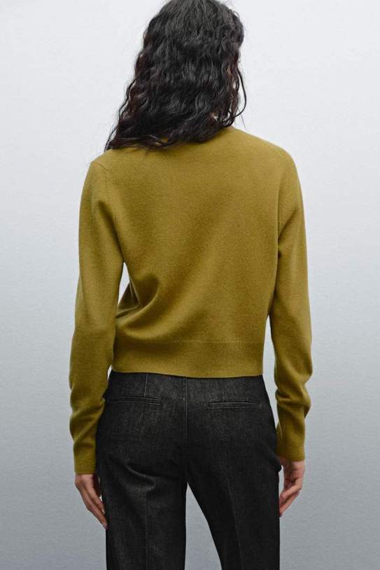 El material de Massimo Dutti utilizado en su elaboración ofrece una calidez envolvente sin ser excesivamente grueso, lo que lo convierte en una opción perfecta para distintas épocas del año. Su tejido de punto fino proporciona elasticidad y movimiento, permitiendo que se adapte al contorno del cuerpo sin perder su estructura.