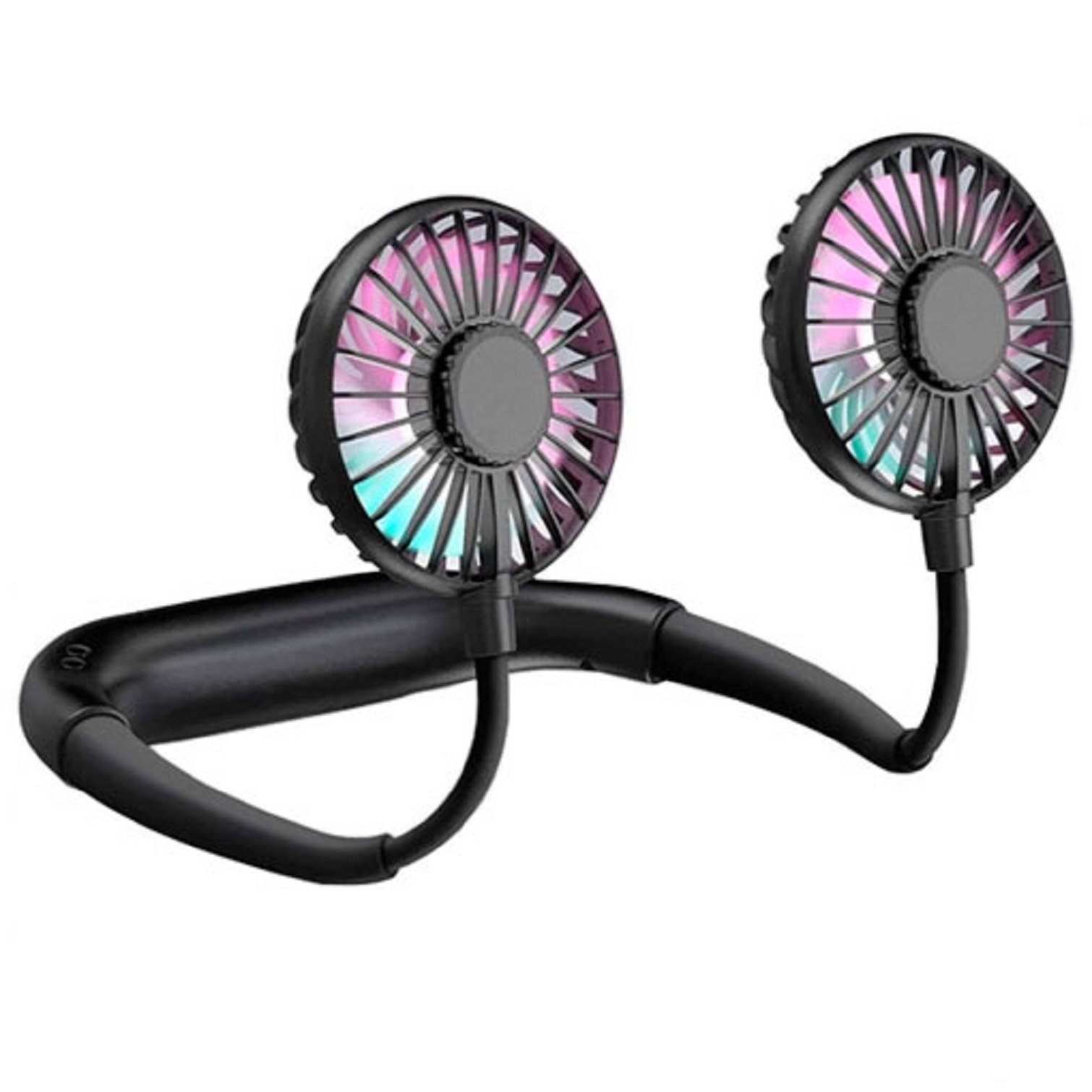 El diseño está pensado para la máxima comodidad, y se puede ajustar al cuello y rotar los dos ventiladores de los lados 360 grados.