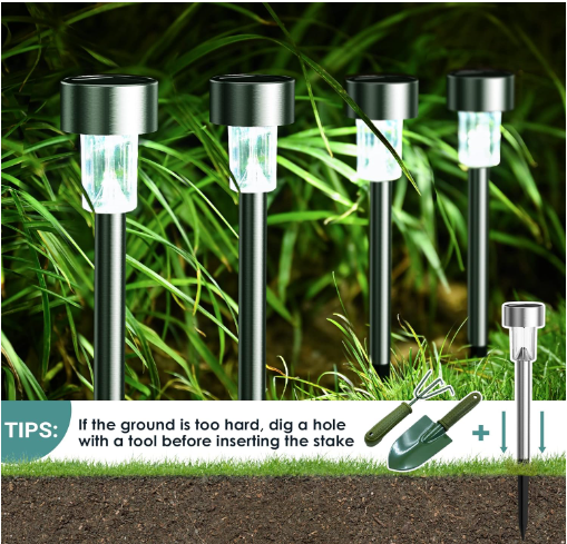 Las luces led que encontramos en Amazon son de bajo consumo, ya que se recargan durante el día con la luz del sol, les cuesta entre 4 y 6 horas para luego poder lucir por la noche entre 6 a 8 horas, ahorrándote el tener que poner focos y pagar la luz que pueden llegar a gastar. Se presentan en pack de 12 luces blancas de acero inoxidable, fáciles de montar y colocar. Se encienden automáticamente cuando se va la luz del sol y se apagan solas para poder recargarse.