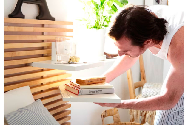 Nos hemos encontrado con este diseño minimalista de Ikea que incluye estantes para que puedas tener todo lo que necesites a mano y puedas acceder a tus gafas, libros y elementos importantes antes de dormir o al despertar.