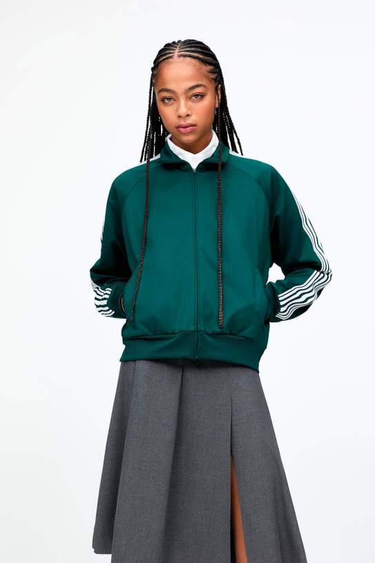 Uno de los puntos a resaltar de este diseño son sus rayas laterales, las cuales recuerdan a los chándales icónicos de décadas pasadas, no solo cumplen una función estética, sino que también aportan un toque diferente y que hace que las mangas también sean protagonistas. Es una prenda especial para combinar con zapatillas deportivas de estilo urbano.