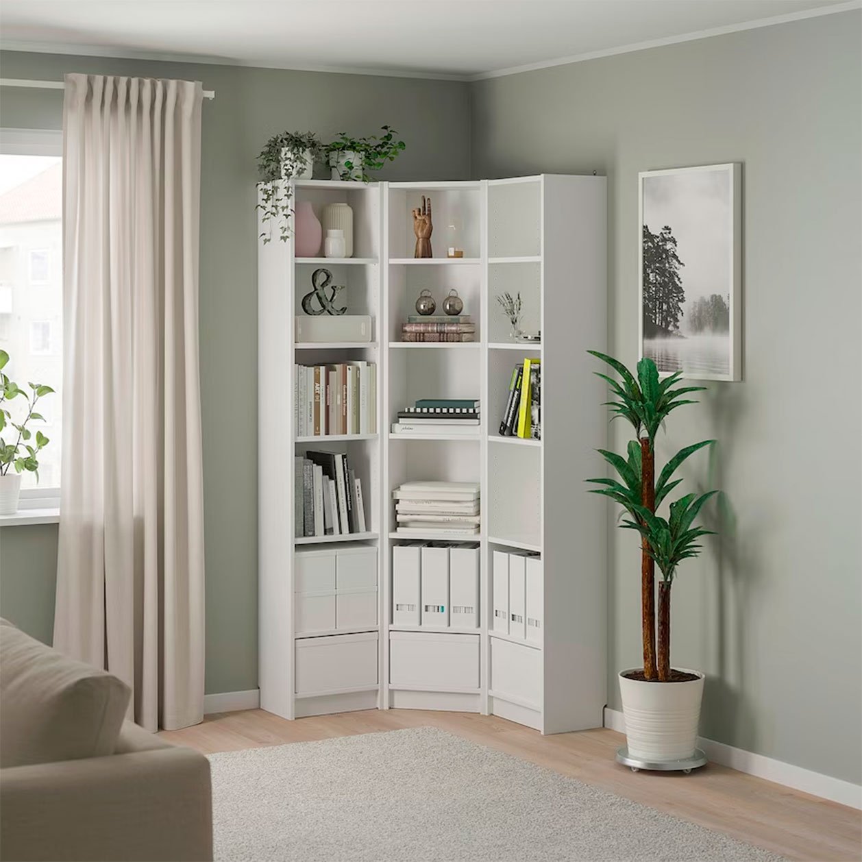 Se trata de la librería de esquina BILLY. La línea BILLY se ha convertido en un best-seller desde que fue lanzada por primera vez en 1979. Y ahora, gracias a su versatilidad, podrás aprovechar cualquier esquina de tu hogar para tener una 'mini biblioteca'.