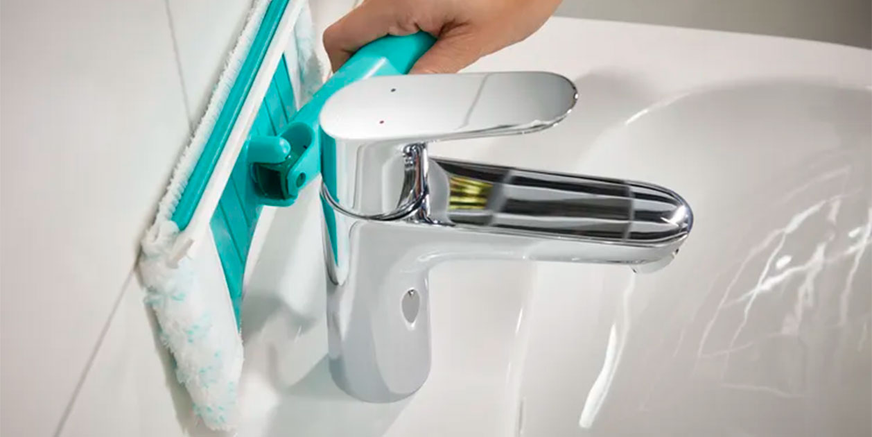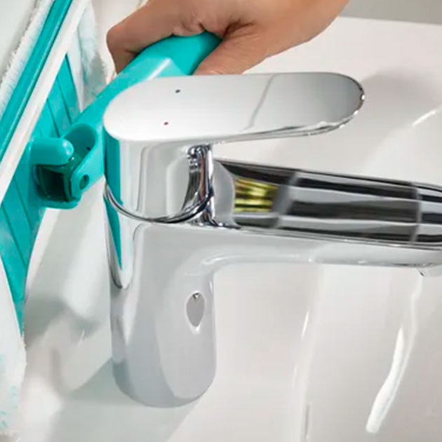 El cabezal del Flexi Pad de Leroy Merlin presenta una escotadura redondeada diseñada específicamente para adaptarse a la forma de los grifos. Esta característica asegura que la mopa elimine fácilmente los antiestéticos cercos de suciedad alrededor de los grifos con tan solo unas pocas pasadas. Es un detalle pensado para hacer que la limpieza sea más precisa y efectiva.
