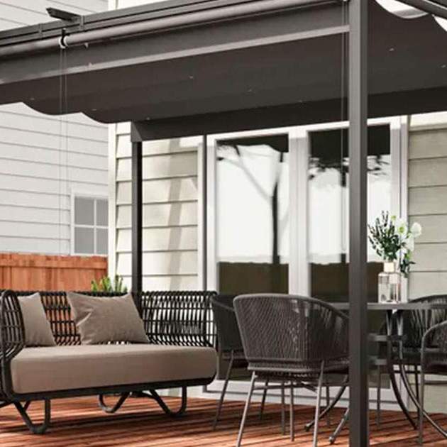 El punto destacado de esta pérgola de Leroy Merlin es su toldo superior retráctil. Fabricado en poliéster con revestimiento de PA, ofrece la flexibilidad de ajustar la cobertura según la posición del sol y tus preferencias de sombra. Con la capacidad de desplazarse a diferentes posiciones, garantiza una experiencia al aire libre cómoda y adaptable. Además, con 12 orificios de drenaje, te brinda tranquilidad durante los días lluviosos al evitar la acumulación de agua.