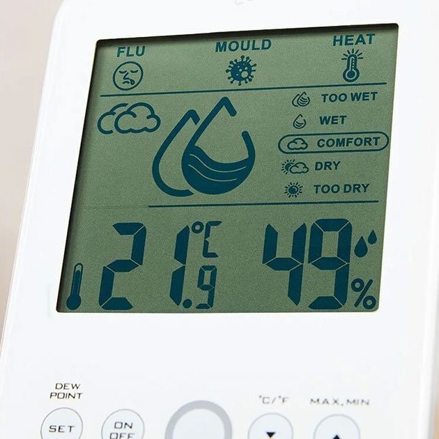 Esta estación meteorológica para interior de Auriol que tendrá a la venta Lidl cuenta con un sistema que indica la temperatura y el porcentaje de humedad del aire. Lo hace en cinco niveles. Y advierte mediante una señal óptica los puntos críticos. Esta señal advierte de humedad, de moho y gripe, y de calor.