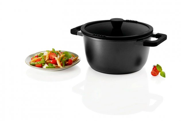 Estas ollas del catálogo de Lidl están disponibles en dos modelos: gris (imitación de granito) o negro. Ambas cuentan con un con un revestimiento que dispone del sello de ILAG®, y que consiste en un sistema de varias capas compuesto por una base de cerámica reforzada y una matriz polimérica en la cubierta que, según el fabricante, proporcionan una excelente antiadherencia duradera.