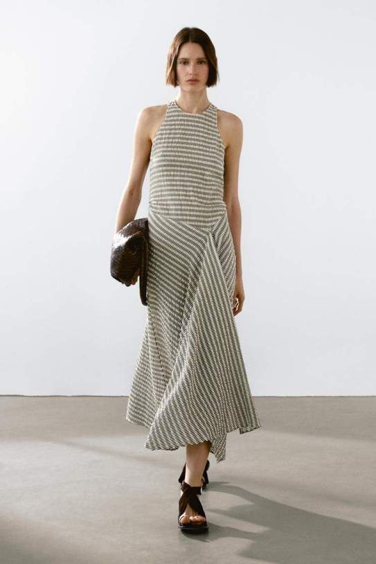 Hay que hablar de este vestido largo de cuadros que tiene Massimo Dutti en su catálogo, pues es un vestido que podríamos considerar como una de las piezas más deseadas de la temporada, lo cual se confirma con la fiebre de compras que hay en cada tienda de la marca. Su diseño fluido y su aire provenzal evocan la elegancia natural y la frescura del campo francés, detalles que han enamorado a todo el mundo, pues nadie ha sido indiferente a este modelo.