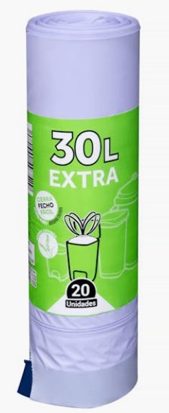 La cadena de supermercados de Juan Roig sacó a la venta la bolsa de basura extra de 30L de Bosque Verde. El paquete contiene 20 bolsas de máxima resistencia de 56 cm de ancho y 62 cm de alto; tienen las dimensiones exactas para adaptarse a cualquier tipo de cubo basura normal, como cubos de reciclaje tres compartimentos o incluso en cubos de pedal.