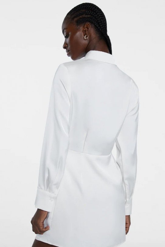 Estás de suerte, porque el vestido drapeado de satén que está de moda está en Stradivarius y a cambio de un bajo precio, precio que te permitirá adquirirlo en cualquiera de sus siete colores, pues es apto para todos los gustos.