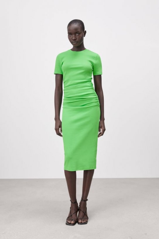 Zara ha unido todos los elementos en tendencia para confeccionar uno de los vestidos más bonitos y cómodos de todo el verano. Es un vestido de corte elegante, ceñido al cuerpo y que vas a poder llevar de noche o de día, triunfando con el mismo estilo.