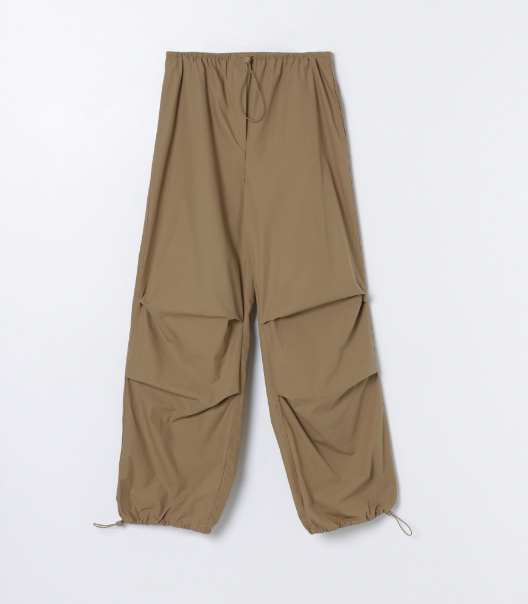Nos hemos encontrado con este pantalón en Lefties, y hemos entendido que es uno de los que tiene más estilo ahora mismo. Su diseño se ajusta en la cintura gracias a sus tiradores ajustables y efecto fruncido que te permitirán ajustarlo a la cintura con delicadeza y el mejor estilo. Con corte amplio y pliegues marcados que crean un efecto único en el pantalón, líneas marcadas y con perneras anchas que van con todos los estilos. Un diseño de costuras marcadas en los laterales que contribuyen con la forma y el diseño. Mantiene el corte amplio y es un diseño con bajo elástico que entra a tono con el cordón ajustable en la cintura y crea un efecto de volumen que es un clásico de los pantalones clásicos de parachute de siempre.