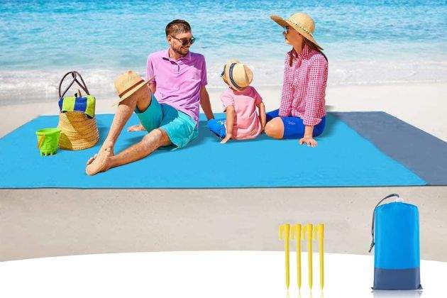 Ideal para familias y resistente al viento gracias a sus estacas en las esquinas y combina materiales que repelen la arena y el agua. Es plegable, fácil de transportar con su bolsa incluida y multifuncional, sirviendo como toldo, manta de emergencia o lona impermeable. Perfecta para un día de playa sin complicaciones.