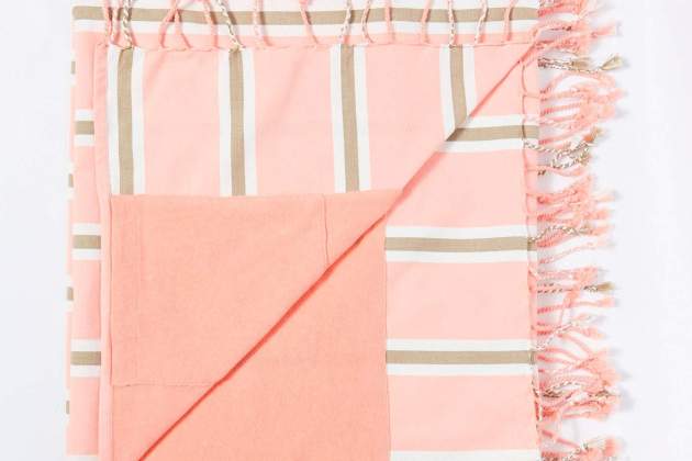 En Sfera encontramos uno de los accesorios básicos cuando se trata de disfrutar de la playa o la piscina. Se trata de un kikoy que tiene un diseño único gracias a los detalles de flecos y al estampado de rayas que le otorga una apariencia fresca. Además, tiene una forma rectangular y un tamaño perfecto para que puedas usarlo como pareo, toalla o chal para cubrir tus hombros en las noches más frescas.