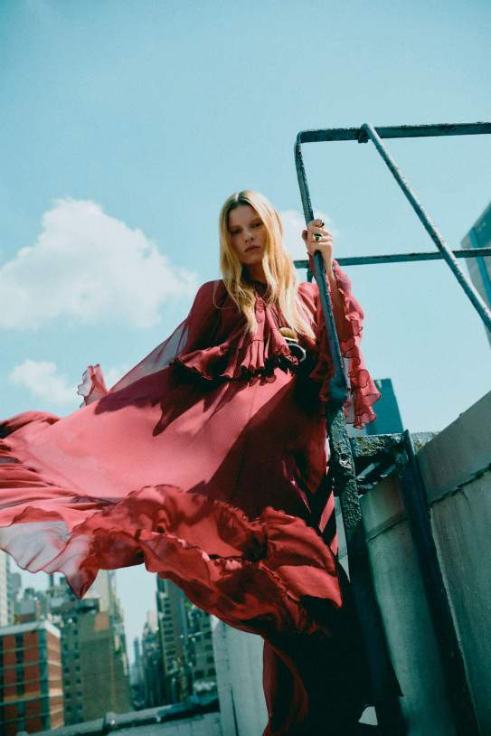 Sfera acapara todas las miradas con este vestido para el otoño que combina movimiento, delicadeza y un excelente volumen, acoplándose con delicadeza a todas las figuras y con un largo vaporoso que crea el mejor de los efectos.