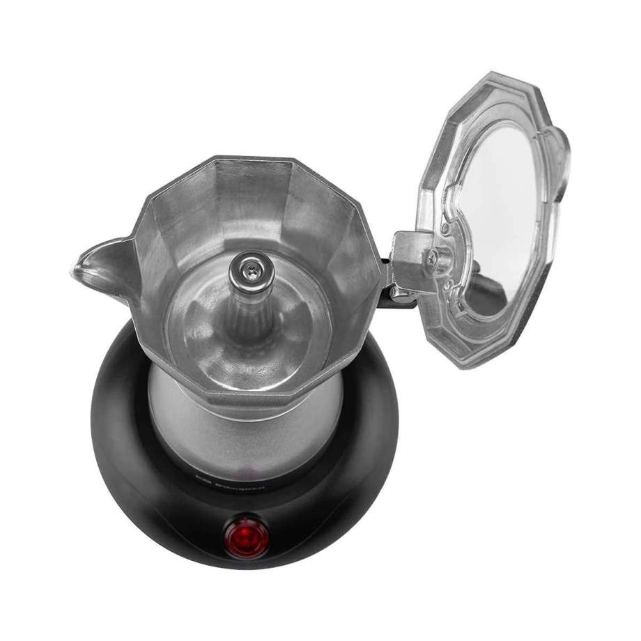 Su diseño clásico, combinado con el moderno acabado en aluminio, no solo adorna la cocina, sino que también te brinda la comodidad de una base de toque frío que rota 360 grados. Su potencia de 480 W garantiza un café caliente en menos de lo que tardas en decir "por favor". Y con la tranquilidad que aporta su sistema de apagado automático, el ahorro energético está asegurado.