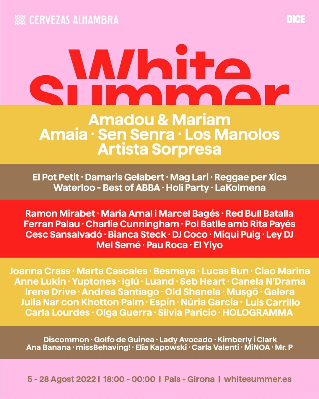 Todo empezó como un pequeño mercado que reunía a amigos y familiares en un rincón idílico de Pals y se ha acabado convirtiendo en uno de los festivales de verano de referencia en la Costa Brava y el Empordà: música, artesanía, moda, food trucks y gastronomía protagonizan el festival White Summer, que este año celebra su 10.º aniversario con la previsión de recibir a más de 100.000 visitantes y con un cartel musical variado preparado para contentar a todos los públicos. Amaia, Los Manolos, Ferran Palau, Sen Senra, Ramon Mirabet, Israel Fernández con Diego del Morao, Dj Miqui Puig o Maria Arnal y Marcel Bagés son sólo algunos de los nombres que este año visitarán la finca Mas Gelabert de Pals del 5 al 28 de agosto. También habrá batallas de freestlye en formato Red Bull Batalla Exhibition y espectáculos para los más pequeños, como las actuaciones de Dàmaris Gelabert o de El Pot Petit. Te dejamos una lista con los 7 conciertos que no te puedes perder para celebrar el White Summer 2022 mientras disfrutas de un verano como es debido.