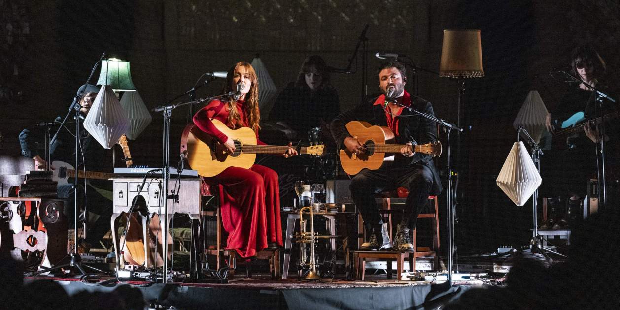 Empiezan ellos solos y luego se incorporan tres músicos, dos de ellas mujeres. En la mesita, una botella de vino y un par de copas. Con la primera canción, Santa Monica Dream, el impacto es la voz de Julia: acaramelada y potente. Yellow brick road es la primera que jalea el público. Una de sus favoritas. Julia toca la armónica. De hecho, lo toca todo, guitarra, teclados, y hasta una trompeta a lo Calexico en un tema como Nothing else, que no cuesta imaginar como banda sonora de un capítulo de Fargo o True Detective. La frivolidad llega, aunque siendo amantes de las versiones, tal vez no lo sea tanto, al interpretar Flowers de Miley Cyrus. Una relectura muy tranquila, reconocible si sabes o te anuncian que es esa. En caso de despiste, se te pasa por alto el detalle.