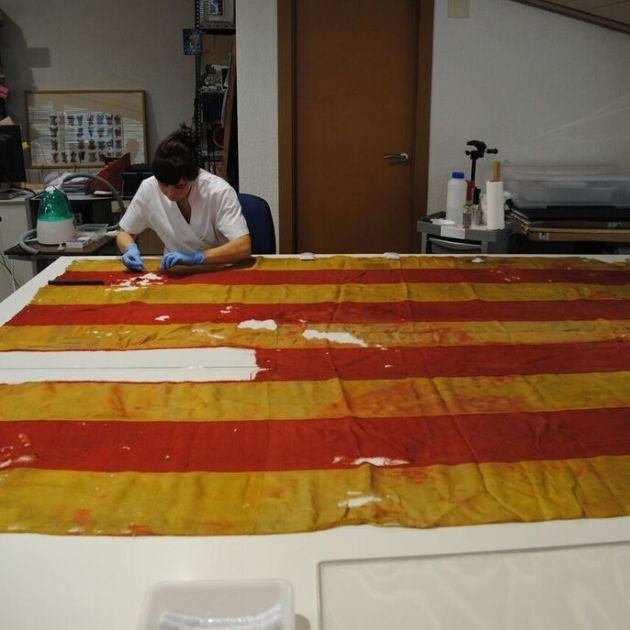 Fotografía de portada: Proceso de restauración de la bandera de Rafael Patxot.