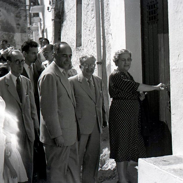 Foto de portada: Clementini Arderiu abre la puerta en el acto de entrega de la casa de la calle de la Amargura 15. Fotografía de Jaume Vicens Vives © Familia Riba (Cedida por Editorial Cal·lígraf)