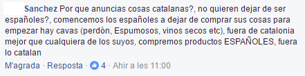 Comentarios del tipo "no compraré nada que sea catalán" o "no nos hace ninguna falta el cava" han sido una tónica entre numerosos usuarios: