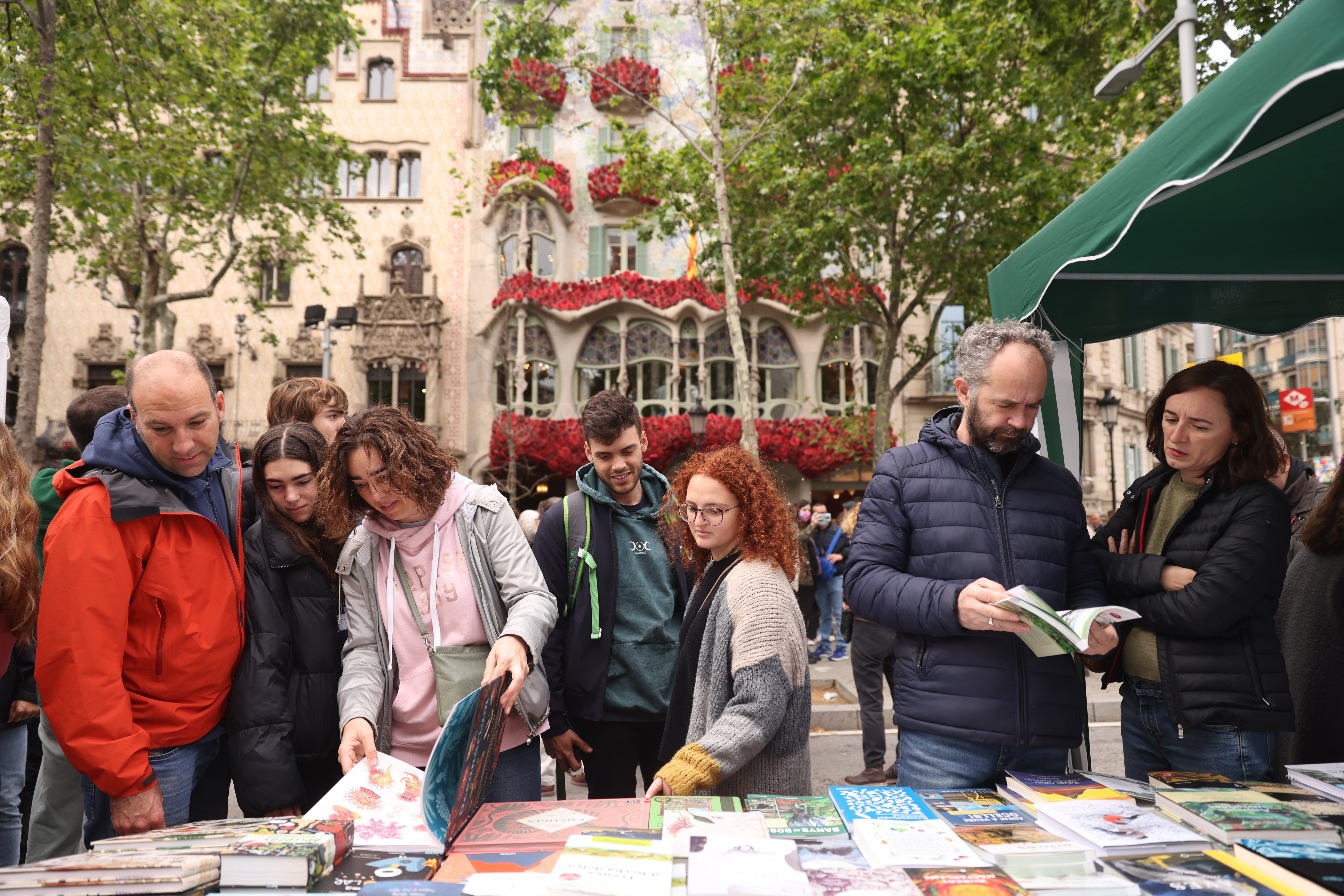 Caminar por Paseo de Gracia un día de Sant Jordi no es muy diferente de cuando la fiesta tenía su epicentro en las Ramblas. Hay una pizca más de oxígeno y guiris que ajenos a la celebración, se detienen, quietos como estatuas humanas delante de la Casa Batlló y la Casa Milán para fotografiarlas. Excepto eso, sigue habiendo un gentío delante de los puestos acabando de decidiéndose, si es que nunca se decide, por el libro que se quiere comprar. Multitud que en puntos indeterminados se fusiona con las colas infinitas que se forman delante de las casetas que esconden escritores best-sellers. En contraposición a estos, en la supermanzana, como ya pasaba en las Ramblas, también hay escritores solitarios que esperan, con la mirada en aquella confluencia indescifrable entre la timidez y la tristeza, que alguien les pida que estampe su rúbrica en un ejemplar de su novela, ensayo o recopilación de poemas.