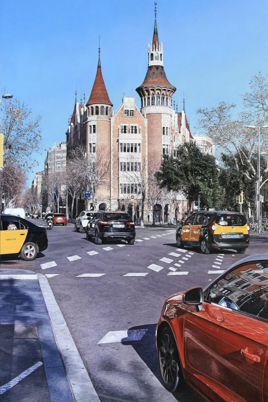 En un tiempo en que la abstracción domina el mundo de la pintura, Daniel Cuervo se sitúa a las antípodas de la moda: ha optado por la pintura hiperrealista. Los cuadros de su serie City Scenes retratan paisajes del entorno urbano con una gran minuciosidad, con un nivel de detalle casi fotográfico. Es fácil llegar a confundir cualquiera de estos cuadros con una fotografía. Presenta, hasta el 8 de octubre, sus pinturas en la Pigment Gallery de la calle Rosellón 193 de Barcelona. Más tarde, saldrán de Barcelona para pasearse por galerías de Amsterdam, Los Ángeles...