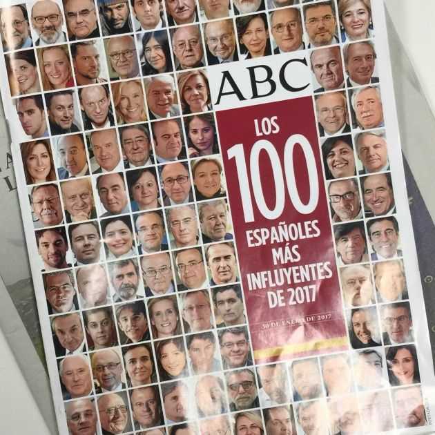 "Los 100 españoles más influyentes de 2017" es una revista que este lunes venía gratis con el diario madrileño ABC. Su afán es poner de relieve a una serie de personajes que ayuden a los españoles a mejorar su autoestima, que "sufre de una profunda crisis", según nos explica el director del histórico tabloide en una especie de prólogo enel que justifica la iniciativa.