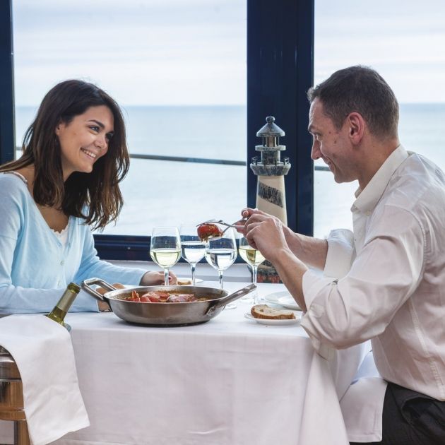 La segunda propuesta es para todos aquellos que encuentran la tranquilidad cuando sienten el mar cerca. De día y especialmente de noche gracias a la luz intermitente del faro, las vistas desde el Hotel Gastronòmic El Far son espectaculares. Situado encima de un acantilado a 175 metros del mar, ya se alojaban en él peregrinos en el siglo XVIII. Y como sois unos románticos pero también os gusta comer bien, os recomendamos la cocina de El Far.