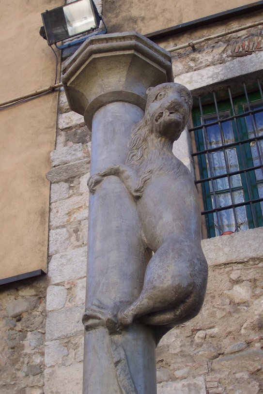 La Leona, una mítica pieza escultórica de piedra calcárea de Girona ubicada delante de la iglesia de Sant Feliu. (Wikipedia)