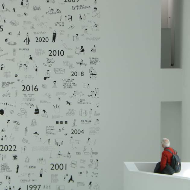 Por otro lado, la colección viene acompañada de un gran mural que ocupa una de las paredes del edificio Atri de arriba abajo. Se trata de una pieza de nueva creación, 'Cronologia Trenta', de la artista Clara Nubiola, que interpreta estas tres décadas del MACBA como una "biografía". Nubiola ha mostrado su emoción por haber podido construir esta obra y ha agradecido a Elvira Dyangani Ose que le haya dado total libertad para mostrar "600 imágenes que intentan explicar el MACBA desde una escala más humana, más de calle". Por su parte, Dyangani Ose ha afirmado que se trata de una obra "cargada de humor y sátira y también de mucha poesía".