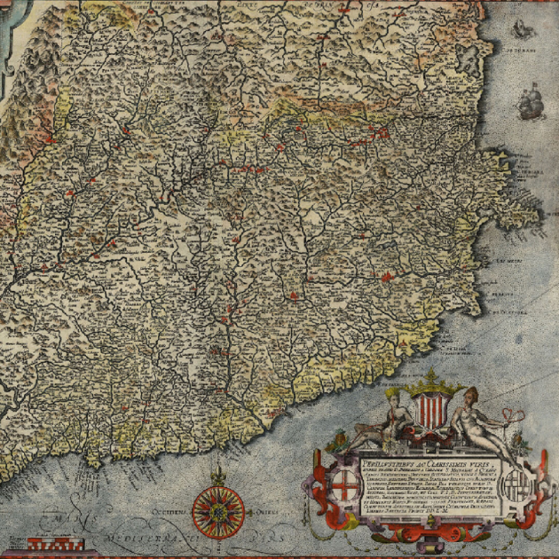 Imagen principal: Primer mapa moderno del Principado de Catalunya (1608), obra del cartógrafo neerlandés Jan Vriens / Fuente: Cartoteca de Catalunya