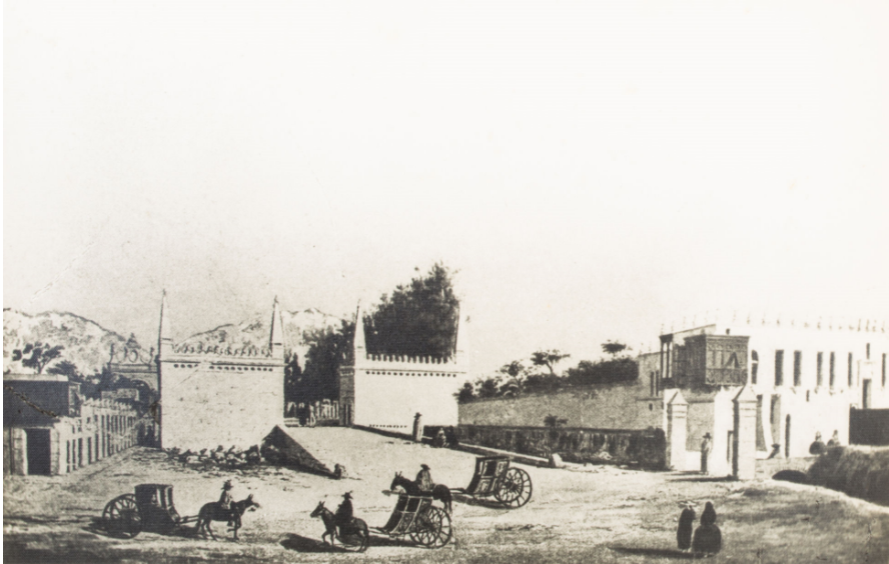 Grabado del Paseo de las Aguas y de la casa de Vargas (finales del siglo XVIII) / Fuente: Pontificia Universidad de Lima
