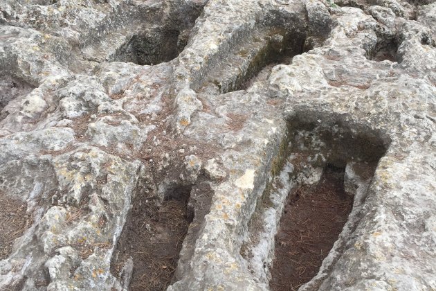 Tumbas antropomorfas cortadas en la roca. Foto: Núria Molist.