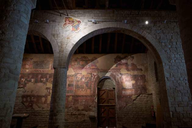 Restaurado un fragmento de pintura mural románica de Santa Maria de Taüll (Alta Ribagorça), según ha anunciado el Departament de Cultura este fin de semana. Se trata de la escena de El Baño de Jesús, que se ha fijado en el muro de la nave central con un sistema seguro y reversible. Fue localizado en la década de los 60, durante los trabajos de restauración arquitectónica de la iglesia, sobre una columna de las arcadas que separan la nave central de la lateral sur o de mediodía —próxima a la cabecera.